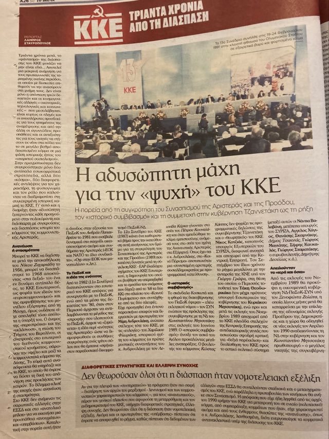 Αυτή ήταν μια από τις χειρότερες κρίσεις -αν όχι η χειρότερη- στην 100χρονη πορεία του ΚΚΕ. Η μοναδική φορά ίσως που ταξικός εχθρός διάβρωσε τις γραμμές του -όχι με πράκτορες αλλά- με την ιδεολογία του, θεώρησε πως “το έχει βάλει στο χέρι” και μπορεί να το καταστήσει διακοσμητικό στοιχείο, την αριστερή πτέρυγα του αστικού πολιτικού συστήματος. Δεν είναι τυχαία η πρόσφατη αναφορά στο “ΒΗΜΑ” και ο θρήνος του κουκουεδολόγου Σταυρόπουλου -στην πρόσφατη επέτειο- για τη χαμένη ευκαιρία…
